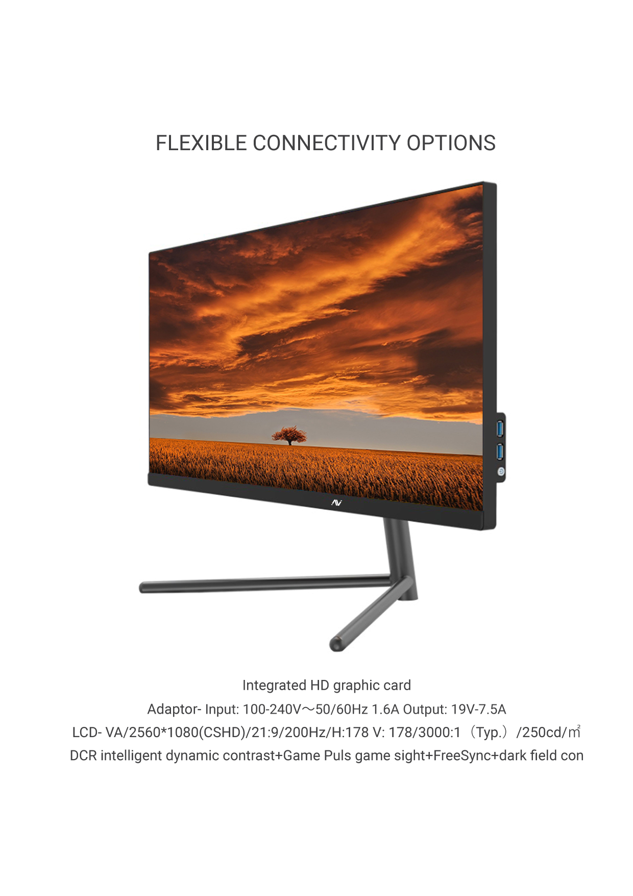 • Backlight Technology: 21:9/200Hz/H:178 V: 178/3000:1()/250cd/㎡
